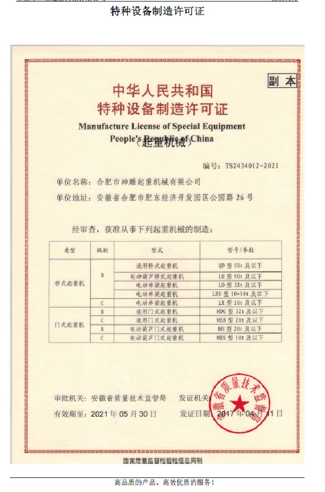 合肥神雕起重機(jī)最新業(yè)務(wù) |